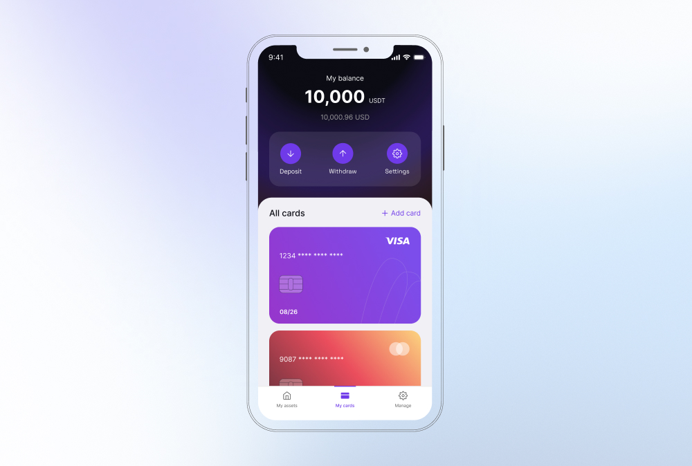 Innowise implemented the backend logic for issuing virtual payment cards, fully linked to users’ non-custodial balances. We integrated processors into the system and configured them for Apple Pay and Google Pay support. Physical card issuance was also prepared and tied to the broader loyalty and KYC flows.
