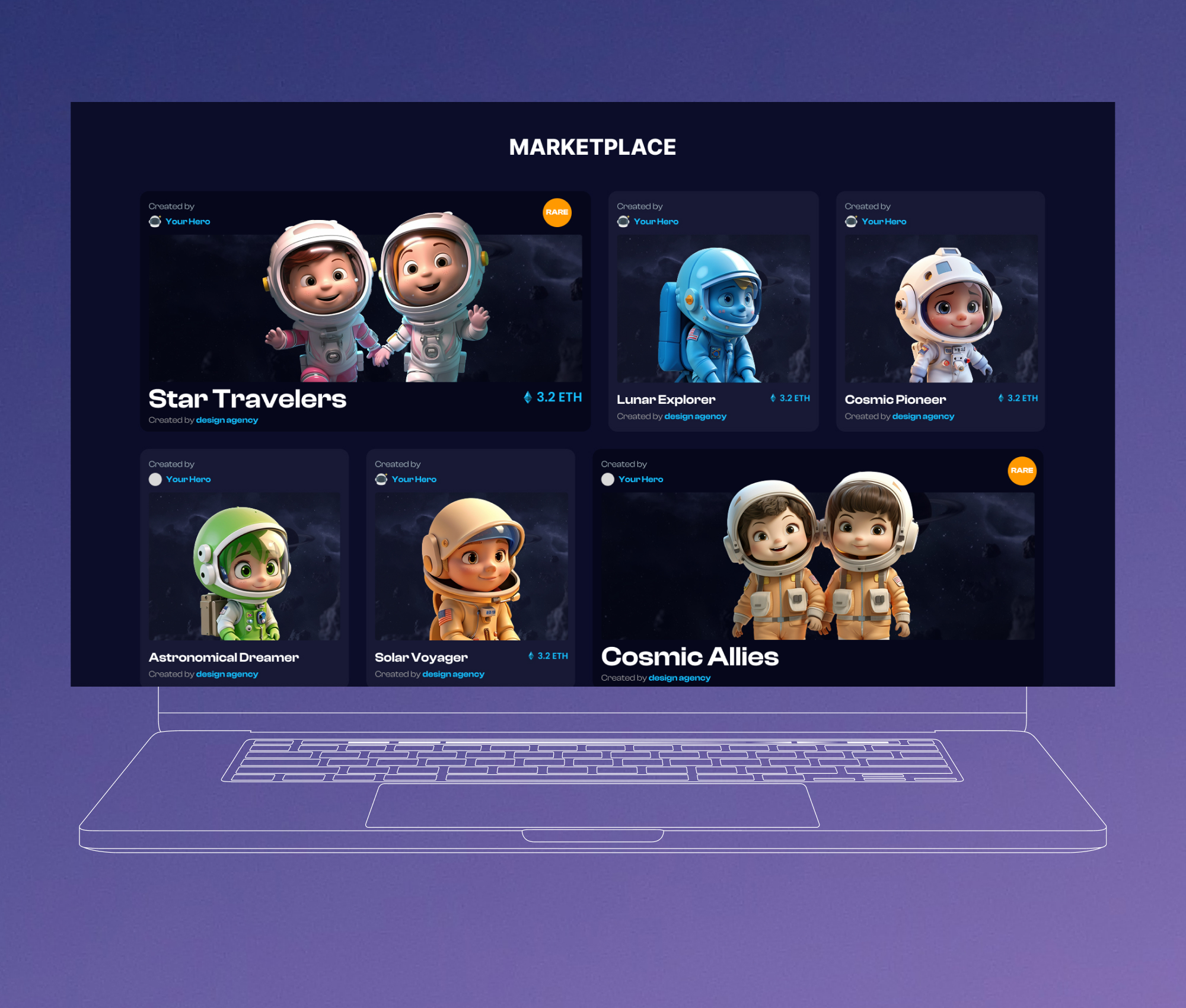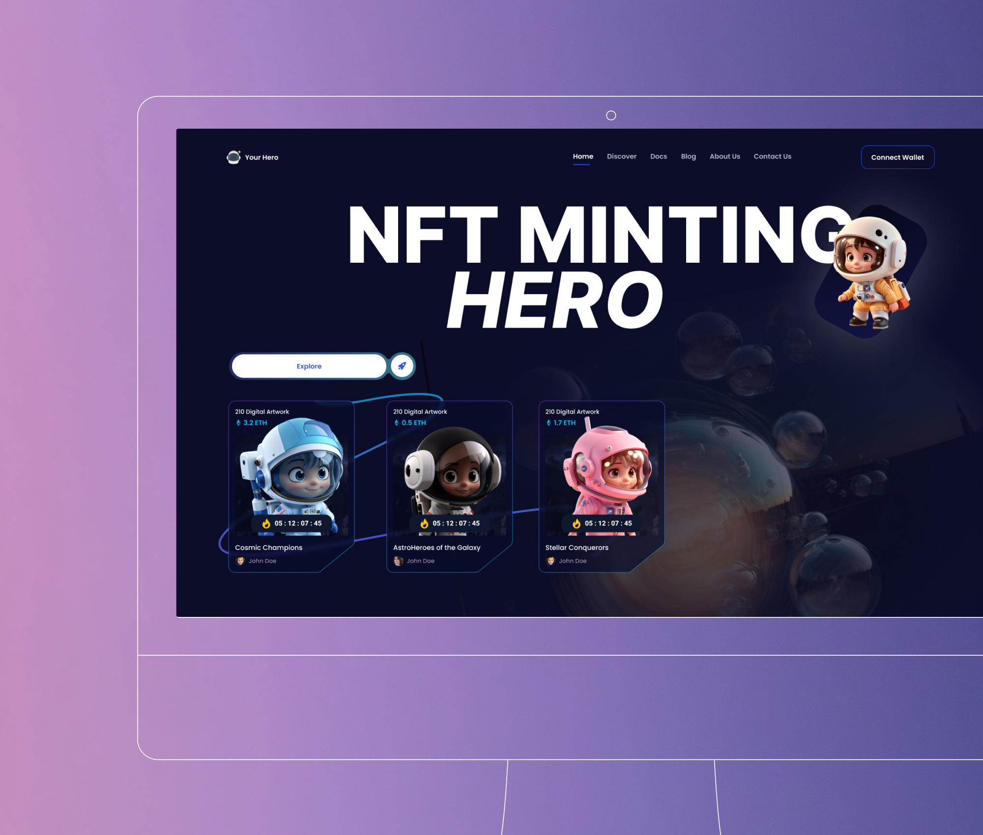 Innowise hat eine ansprechende NFT-Präge-Website mit einem abgestuften Seltenheitssystem für eine NFT-Sammlung von 3D-Helden entwickelt.