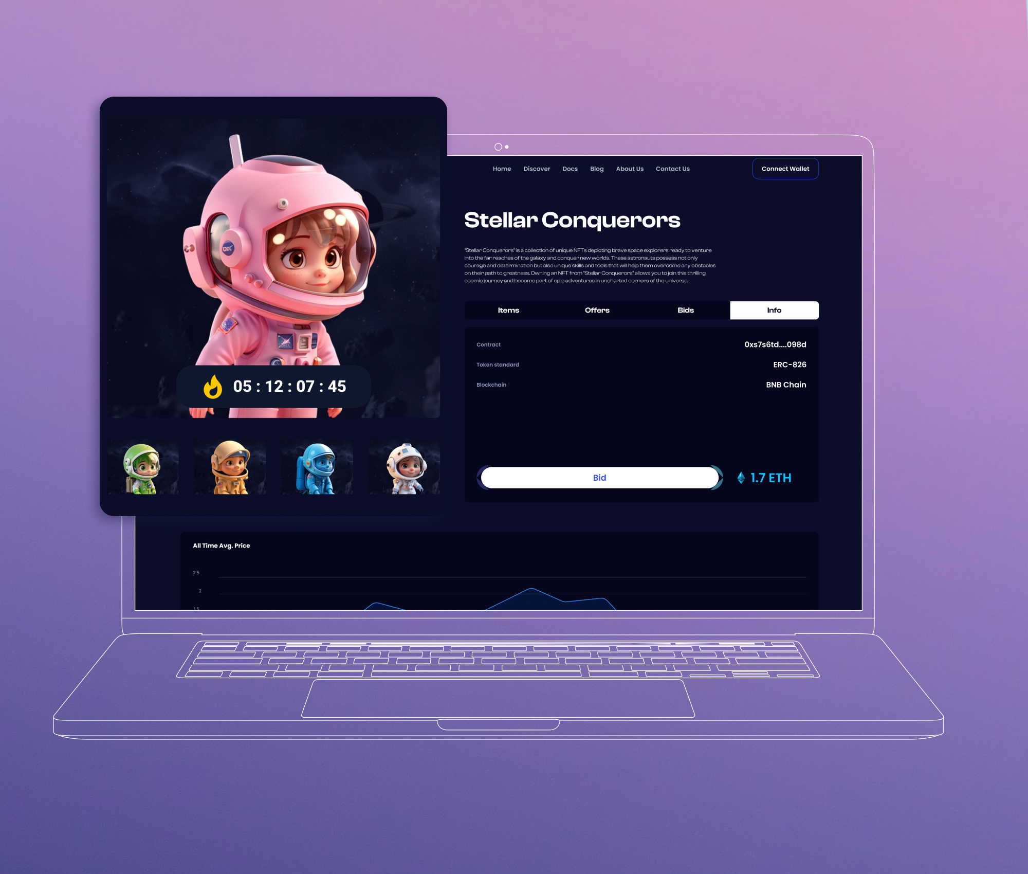 Unser Kunde erkannte dieses Potenzial und kam auf die Idee, eine NFT-Kollektion mit einer Serie von 3D-animierten Charakteren zu erstellen. Dieses Projekt hatte mehrere Ziele, darunter die Generierung einer zusätzlichen Einnahmequelle, die Steigerung der Markenbekanntheit und der Aufbau einer starken NFT-Community. Sie beauftragten das Innowiseteam mit der Umsetzung des Projektkonzepts, der Integration von Smart Contracts, der Entwicklung von Webinterfaces und der Ergänzung interaktiver Elemente zur Verbesserung der Benutzererfahrung.