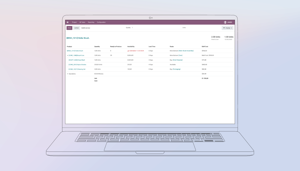 Auf der Bestandsseite werden alle Vorgänge wie Eingänge, Lieferungen, interne Transfers, Retouren und Anpassungen abgedeckt. Automatische Erinnerungen helfen den Mitarbeitern bei der Einhaltung von Fristen, während Chargen- und Seriennummern jedes Produkt mit vollständiger Rückverfolgbarkeit verfolgen. Die Vorlaufzeiten sind in jeder Phase transparent, sei es bei der Lieferung durch den Lieferanten, bei der Vorbereitung der Fertigung oder beim endgültigen Versand.