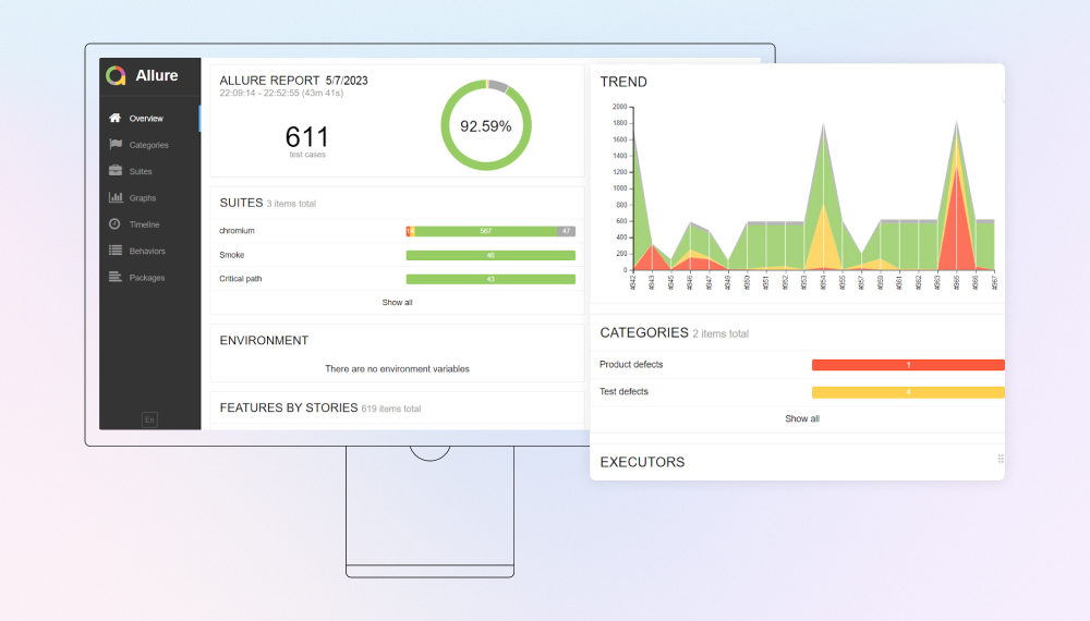 Por ahora, nuestro equipo de automatización de control de calidad, formado por dos ingenieros, ha entregado Más de 900 pruebas automatizadas que cubren situaciones críticas de uso diario, desde transacciones de correo electrónico y programación de calendarios hasta almacenamiento de archivos y chat. Para garantizar la fiabilidad, establecimos y mantuvimos sistemáticamente un KPI de 90%+ estabilidad de la prueba en todas las ejecuciones.