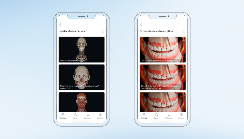 Se trata de una biblioteca digital compuesta por guías clínicas escritas por expertos. Cada artículo está diseñado para proporcionar un contexto teórico más profundo para los modelos 3D del atlas, garantizando que los usuarios también comprendan el aspecto teórico de las condiciones clínicas reales.