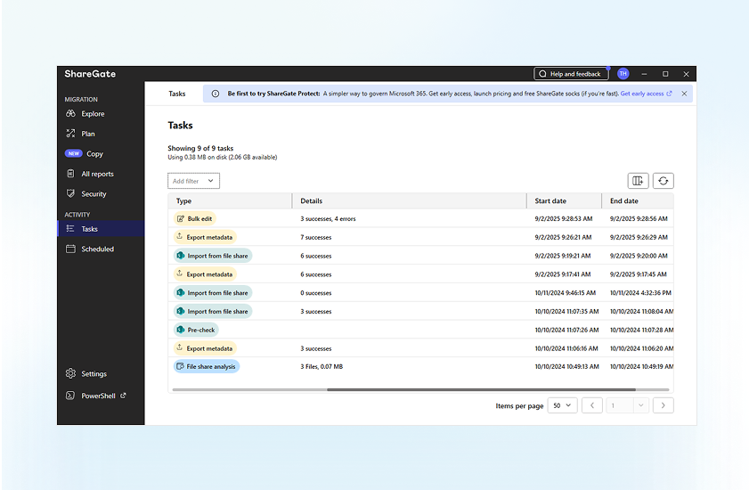 Hantera storskaliga flyttar med effektivitet. ShareGate möjliggör massredigering, batchschemaläggning och regelbaserade migreringar, vilket drastiskt minskar manuell administration och mänskliga fel.